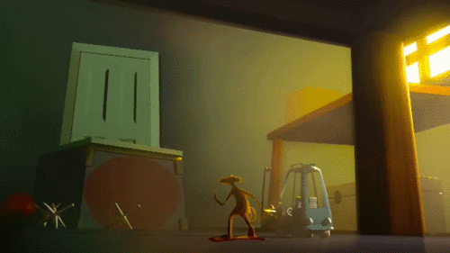 This was the process for environment where we start very abstractly and progress in our thumbnails to include characters that we'd created. The final version being a flipped and scaled version of the top right thumbnail.